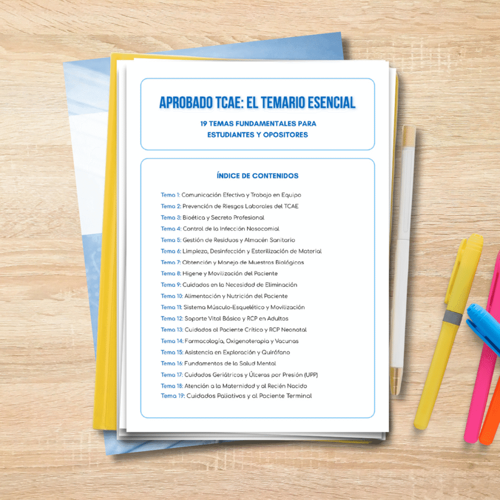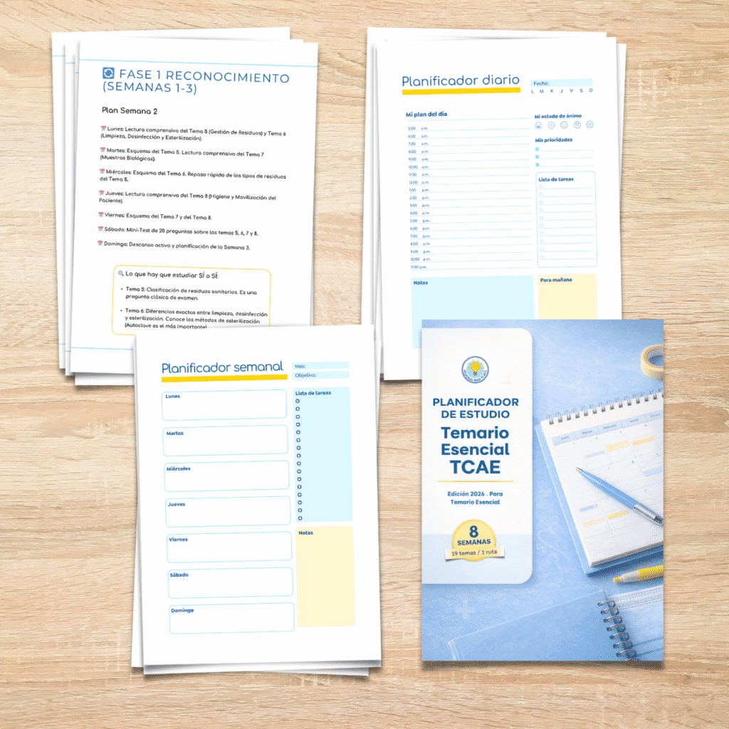 La hoja de ruta de 8 semanas para dominar tus 19 temas y llegar preparada al examen, sincronizada con el Temario Esencial Aprobado TCAE, que te dice qué hacer, semana a semana, para que dejes de improvisar y empieces a avanzar con foco.