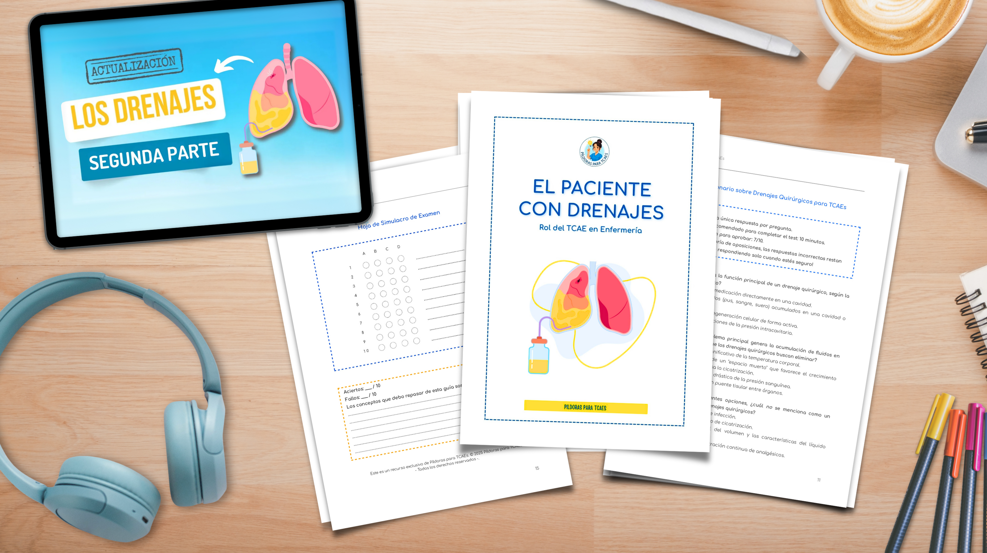 Mientras otros solo memorizan la teoría, tú aprenderás a aplicar los cuidados reales que te van a preguntar. Este sistema te da el rol del TCAE, las respuestas a los problemas típicos y la práctica que necesitas para ir sobre seguro. Incluye el Cuaderno de Estudio, el Test específico y el Audio MP3 para que lo domines en cualquier lugar.